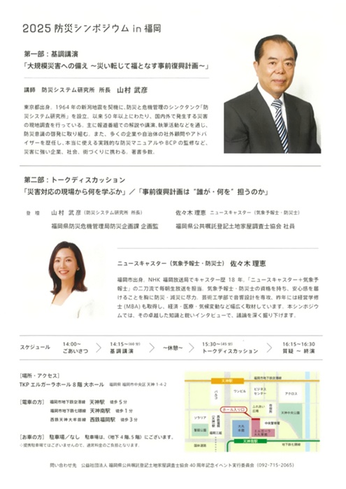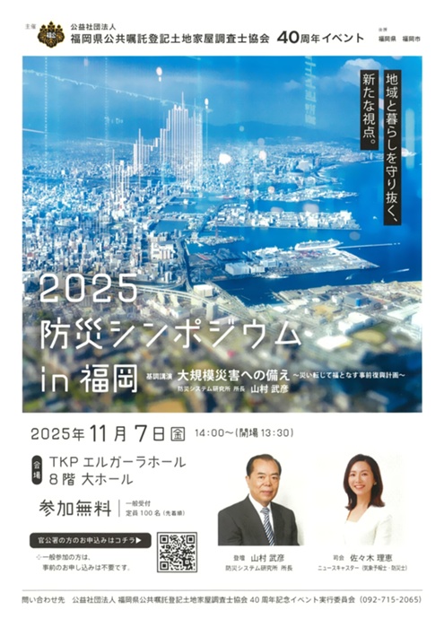 令和7年11月7日(金)・14:00より、防災シンポジウムin福岡のイベントを行ないます。